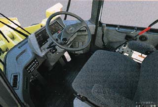 キャビン付きは当然ですが、試験官が乗るために除雪車のようにワイドキャビンを装着しています。